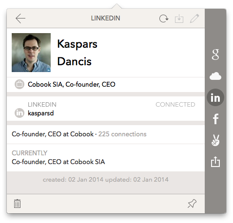 When a read only social network integration is connected, all of your friends/connections are imported in Cobook and it does its best to match them to your existing contacts. These integrations do not update your existing contacts automatically.
