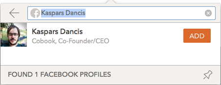 Contact list will be populated with found contacts in the social network and they can be previewed in quick view by either clicking on them or navigating using keyboard. Pressing enter or Add on a selected contact will automatically link this contact to the open contact.