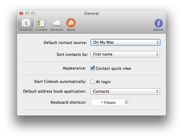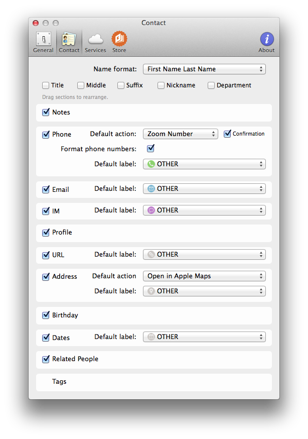 - Default address book application - select application that will be launched when OSX wants to open a contact. This can be either from mail, spotlight, Alfred or when opening vCard.